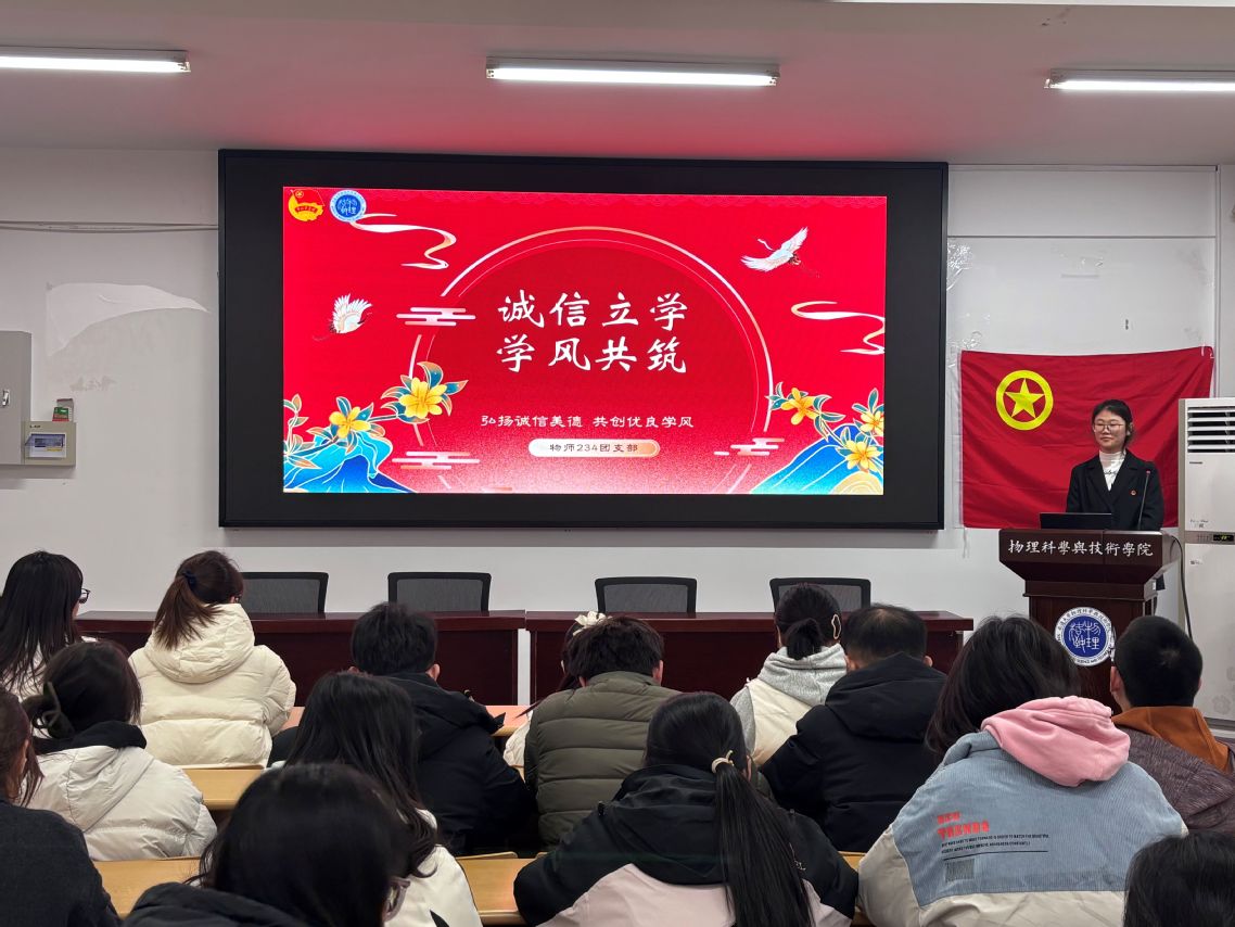 为传承中华优秀传统美德,深入践行社会主义核心价值观,进一步增强团员青年的诚信意识与社会责任感,培育文明健康、向上向善的诚信文化,12月4日,网赌平台 团委主办、物师234团支部承办了“诚信立学,学风共筑”主题团日活动。