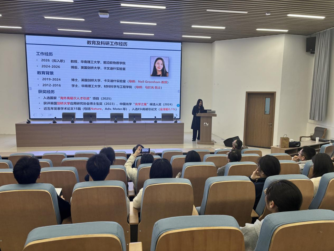 在交流环节,孙雨琦结合自身科研经历,与现场师生围绕钙钛矿发光器件的研究热点、实验方法及未来发展方向等问题进行了深入交流。本次学术报告内容丰富、前沿性强,进一步拓宽了网赌平台 师生的学术视野,增进了大家对新型发光材料与器件物理研究前沿的了解,激发了师生浓厚的学习兴趣和科研热情。